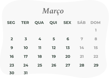 Consulte o nosso calendário com todas as datas em que estaremos fechados e garanta que receba os seus produtos nas datas pretendidas. Antecipe as suas encomendas e evite atrasos.